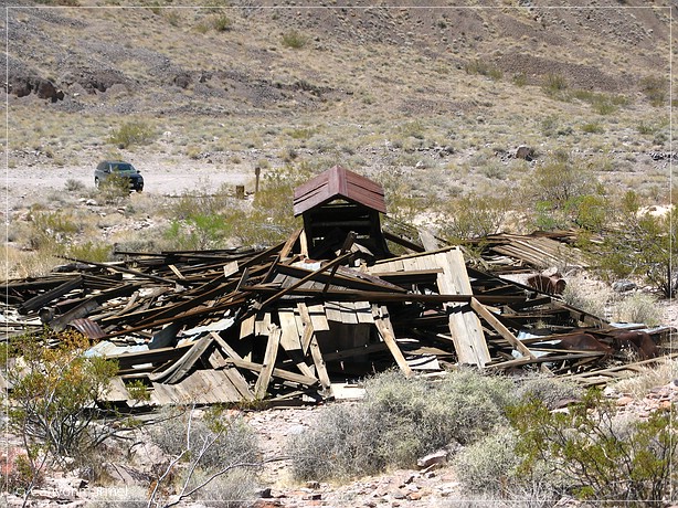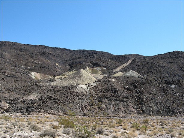 Wir haben uns für heute die Widow Mine und einige der Minen an der Straße nach Ryan vorgenommen. Diese zweigt von der Furnace Creek Road ab, die Richtung Dantes View führt. Wenn man nach der Abzweigung Richung Ryan weiter Richtung Dantes View fährt, kommt nach etwa 2,5 Meilen links oben die Widow Mine. Ich hoffe, sie ist zugänglich.