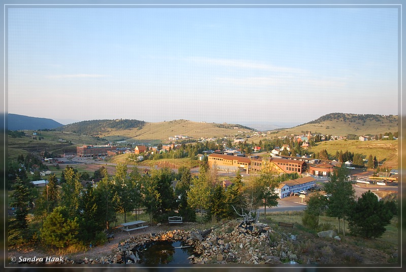 Auch heute waren wir wieder früh wach und standen um 7.00 Uhr auf. Die letzte Nacht war herrlich. Da wir im dritten Stock waren mit Innenkorridor konnten wir bei offenen Fenster schlafen, wunderbar. Hier ein Blick auf Cripple Creek aus unserem Fenster.