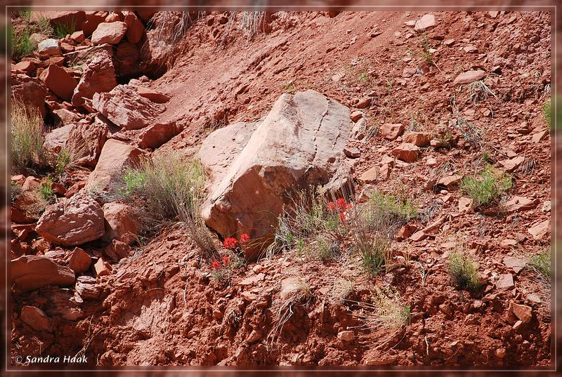 Wir entschlossen uns, nach Old Paria zu fahren und nochmal in Richtung Box Canyon zu wandern, in der Hoffnung, daß wir zwischen den Felsen vor dem Sturm geschützt waren. Unterwegs fragten wir uns, ob vielleicht mit dem Wiederaufbau von Old Paria schon begonnen wurde, aber als wir ankamen, sahen wir, daß sich gar nichts geändert hatte. Sieht so aus, als würden sie das nie mehr aufbauen, schade