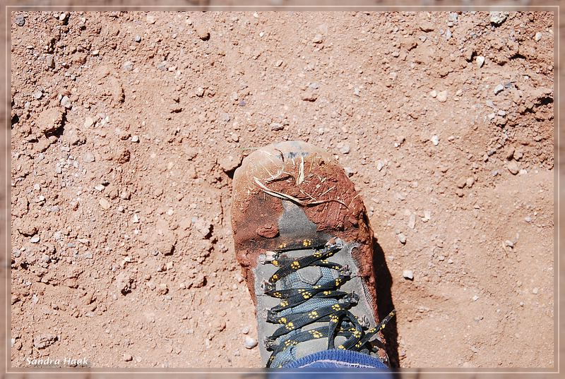 Außerdem stürmte es hier auch fürchterlich. Also zurück zum Auto. Und kurz vor dem Auto sank ich richtig tief in den Schlamm ein. Super, aber das paßte zu diesem Sch… Tag. So sah mein Stiefel nach den ersten Reinigungsversuchen aus