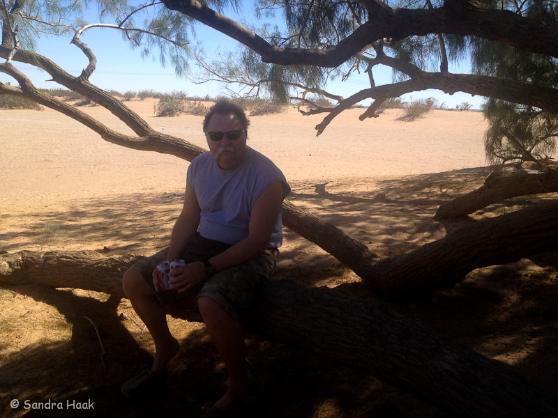 Dann haben wir im Schatten des Baumes erstmal ein eiskaltes Bier getrunken, das bergauf laufen im Sand war ganz schön schweißtreibend