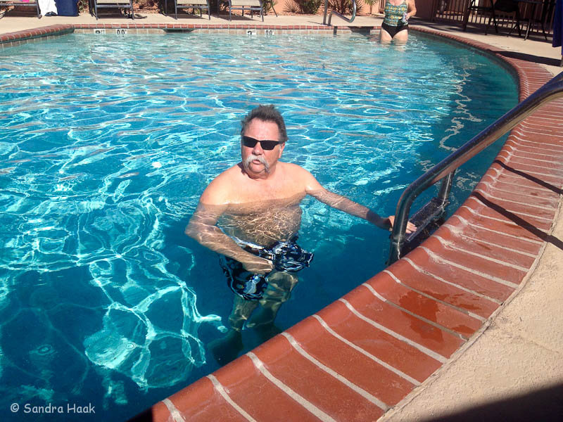 Dann enterte um 16 Uhr eine amerikanische Großfamilie den Poolbereich. War ideal für Sozialstudien, alles war vertreten, zwei Omas, von denen eine dauernd gelesen hat und wohl lieber ihre Ruhe gehabt hätte, 2 plärrende Kinder, ein Wichtigtuer mit albernem Hütchen, eine Zicke, eine Übermutter, die alle mit Wasser besprühte, Poolwasser wohlgemerkt und das ins Gesicht, eine fürsorgliche Tante und der unscheinbare Ehegatte der Übermutter, Typ graue Maus. Wir hatten einiges zu lästern