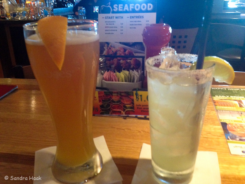 Wir beschlossen heute endlich mal was gescheites zu essen, also fuhren wir zu Applebees. Dort war glücklicherweise noch Happy Hour, das hieß, für mich gab es eine Margarita und für Klaus Blue Moon