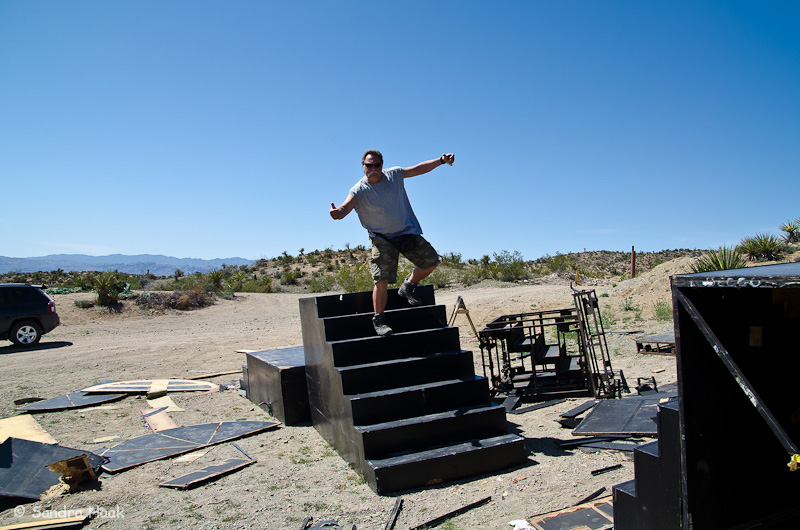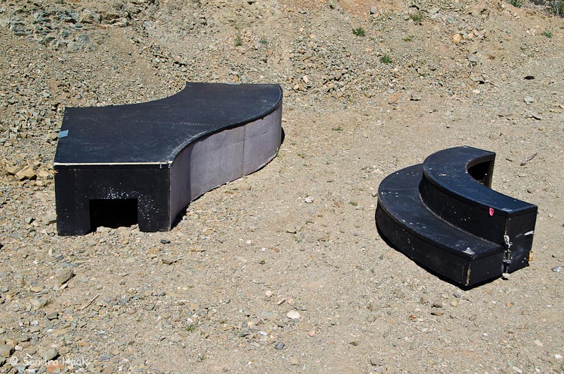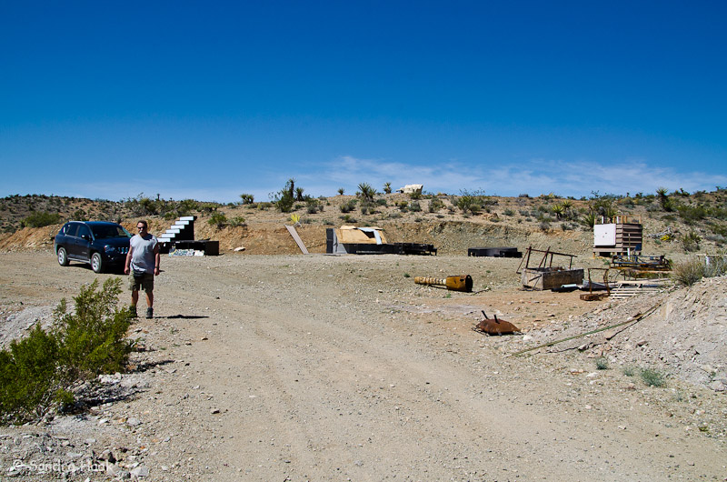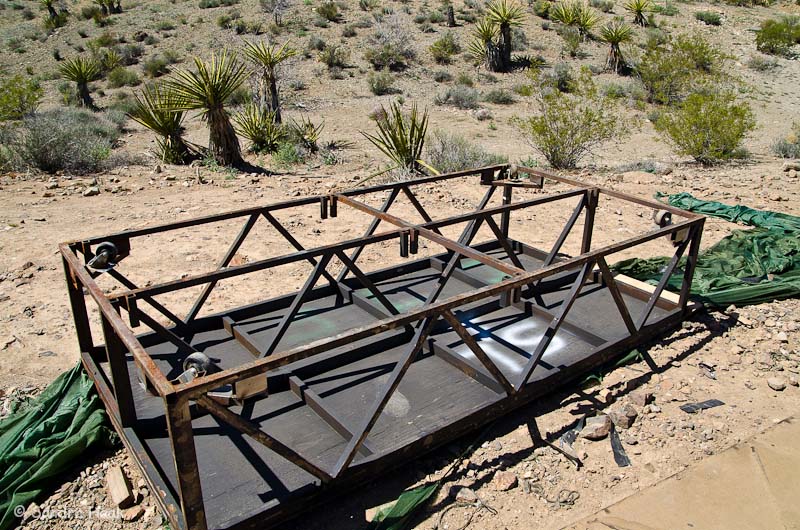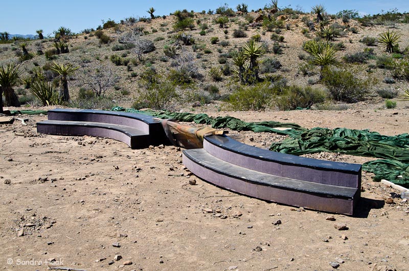 Wenn man sich das alles ansieht, die anscheinend maßgefertigten Kulissen, quadratmeterweise Fallschirmseide, der Hut, das muss Tausende von Dollar gekostet haben. Wieso liegt das hier so offen in der Wüste rum? Okay, es muss Zeiten gegeben haben, als das Gebiet abgesperrt war.