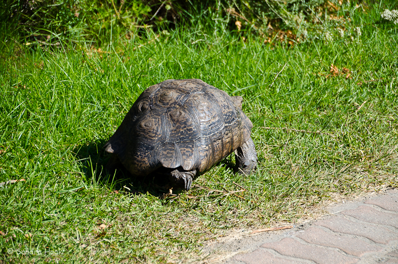 Dort erledigten wir beim Einfahrtshäuschen den üblichen Papierkram und fuhren in den Park. Bereits nach kurzer Zeit sahen wir links eine schöne Schildkröte.