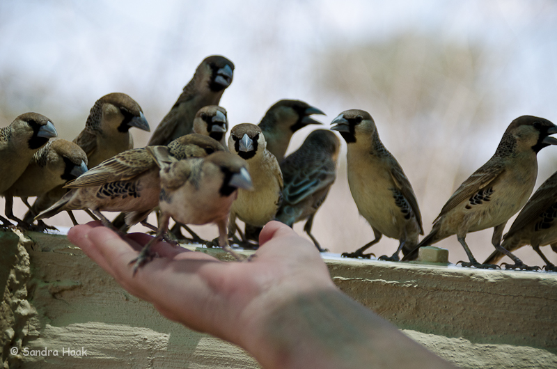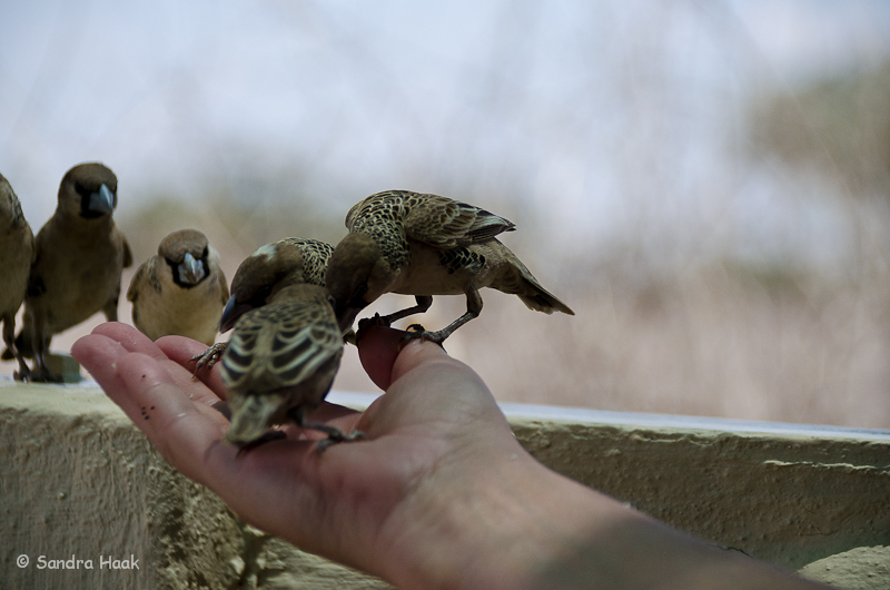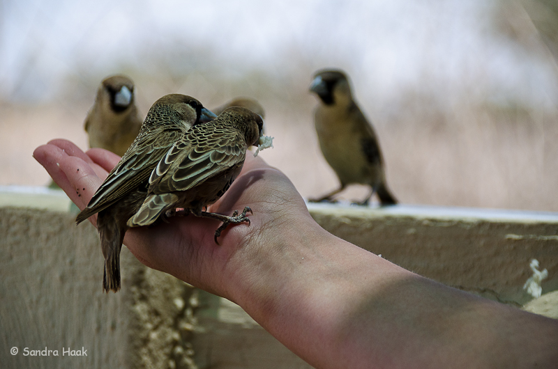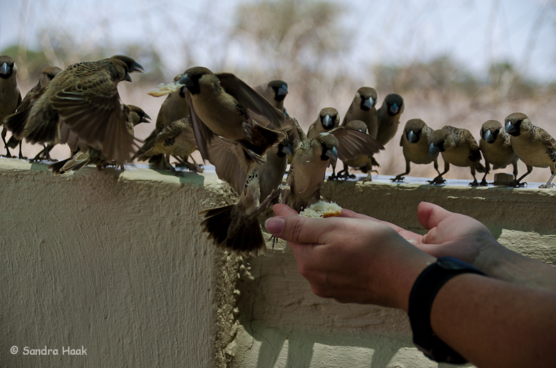 Wir hatten noch altes Brot und die Vögel freuten sich. Sie waren so gierig, dass sie mir auf die Hand geflogen sind