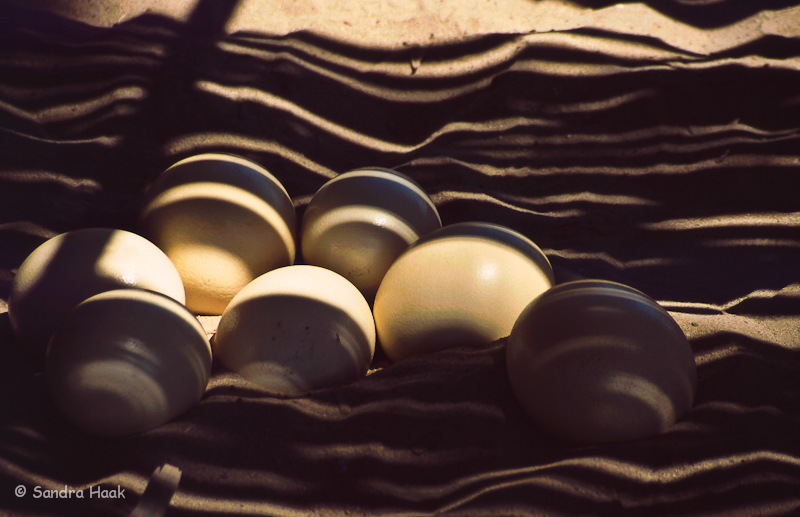 Die Eier entsprechen ca. 24 Hühnereiern und man kann sich draufstellen, ohne dass sie kaputt gehen.