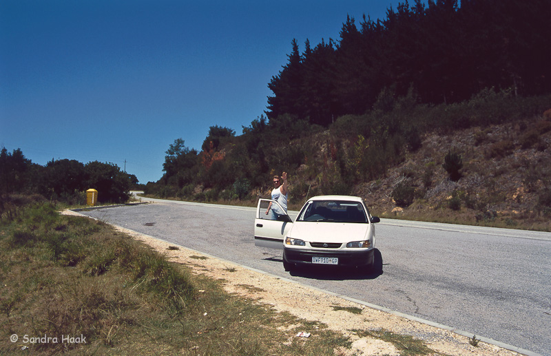 Nach der Hälfte des 3 km langen Rundkurses flogen plötzlich mehrere große Bremsen ins Auto Wir haben sofort die Fenster geschlossen und gekämpft, bald waren wir siegreich. Klaus hatte dann die Nase voll, gesehen haben wir auch nichts mehr, also ab nach Knysna.