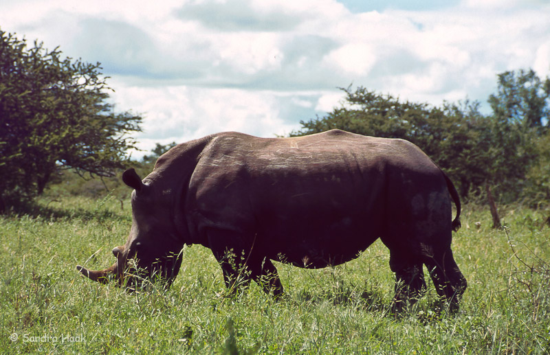 Nach einiger Zeit rissen wir uns los und fuhren wieder in den Umfolozi-Teil. Am Souvenierstand kauften wir noch ein Nashorn aus Stein, da es einen kleinen Fehler hatte, bekamen wir es billiger, 20 Rand.