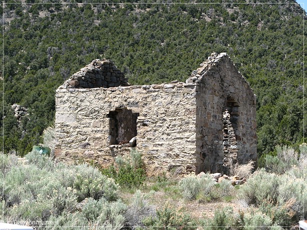 Dann fahren wir los. Wir wollen zur Ghost Town Stateline. Wir fahren über die 56 nach Westen Richtung Nevada. Nach etwa 10 Meilen kommen wir an einem Schild Old Irontown vorbei. Darüber habe ich schon im Internet gelesen. Praktisch, daß es auf dem Weg liegt. Wir biegen natürlich ab. Es liegt drei Meilen von der Hauptstraße entfernt und ist ein Historic Park. Sehr gut, so ist es wenigstens vor Zerstörung sicher. Gold Springs war es ja leider nicht