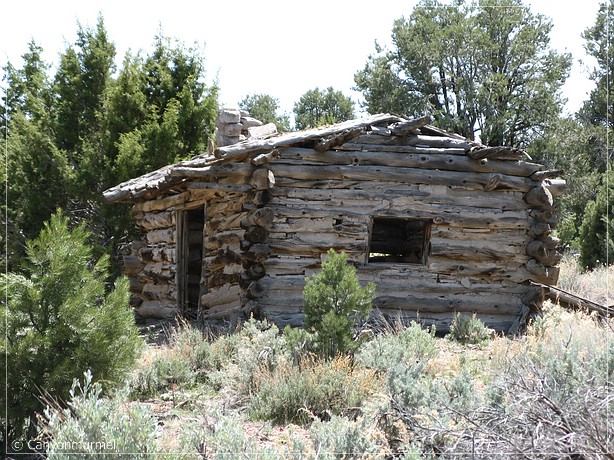 Noch weitere alte Steinhäuser und Blockhütten sind hier. Auch ein alter Wohnwagen.