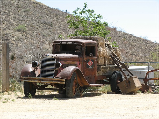 Es sind 4 Meilen auf asphaltierter Straße bis zur Ghost Town. Auch diese Ghost Town ist noch bewohnt. Nur zwischendurch sieht man sehr alte oder verfallene Gebäude oder Auto.