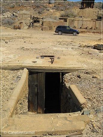 Wir glauben, daß der ganze Boden mit Gängen durchzogen ist, da es manchmal komisch nachgibt beim Gehen. Wir finden auch einen Eingang, aber natürlich betreten wir die Mine nicht.