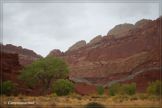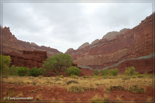 Wir vorhergesagt regnete es heute und es sollte den ganzen Tag regnen Egal, wir hatten ja extra den morgigen Fahrtag auf heute vorverlegt. Wir fuhren von Hanksville nach Torrey und durchquerten dabei den Capitol Reef. Wir machten nur kurz ein paar Bilder aus den Auto, da es schüttete.