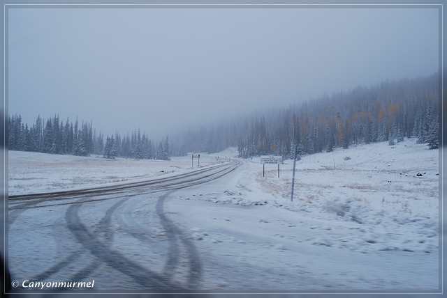 Weiter ging es zur UT 14 und dort Richtung Cedar City. Die Strecke stieg auf fast 10000 ft. an, die Folge war der nächste Schneesturm, aber was für einer.