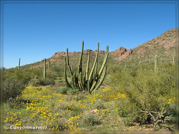 Angekommen bogen wir gleich auf den 21 Meilen langen Ajo Mountain Way ab. Schon während der Fahrt hatten wir wieder Unmengen an Blumen gesehen.