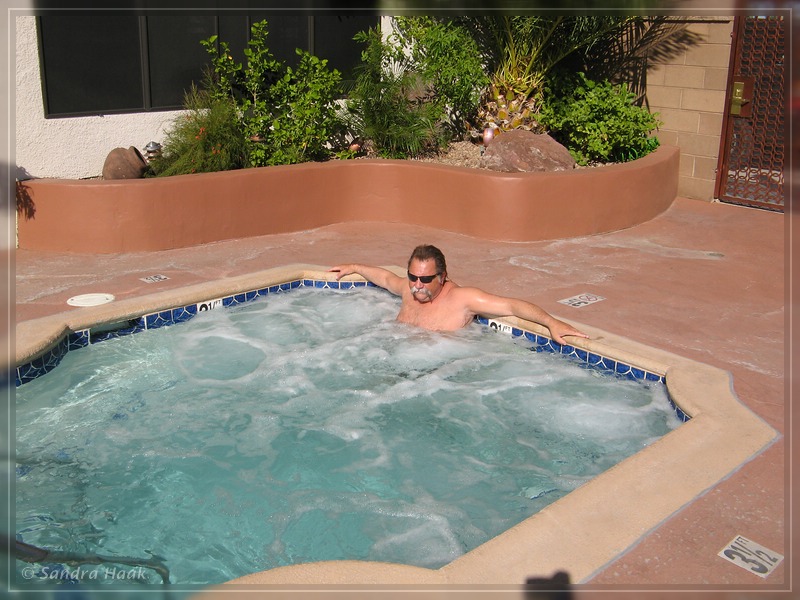 Wir beschlossen einen Pooltag einzulegen, damit Klaus sein Kreuz im warmen Wasser und im Jacuzzi vielleicht wieder auf Vordermann bringt.