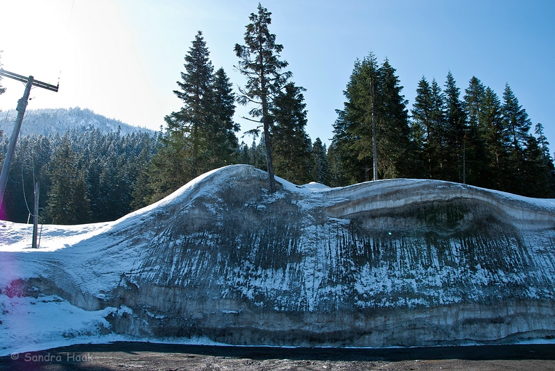 Mittlerweile waren es ca. 2 m Restschnee links und rechts der Straße. Wir erreichten den Stevens Pass und sahen das Ziel der Skifahrer, hier gingen die Lifte ab. Für uns ging es wieder bergab. Leider war der Cascade Tunnel, unser nächster Programmpunkt irgendwo unter den 2 m Schnee begraben, man konnte nichtmal die Straße erkennen. Und kalt war es mittlerweile geworden. Damit war der zweite Punkt auch erledigt