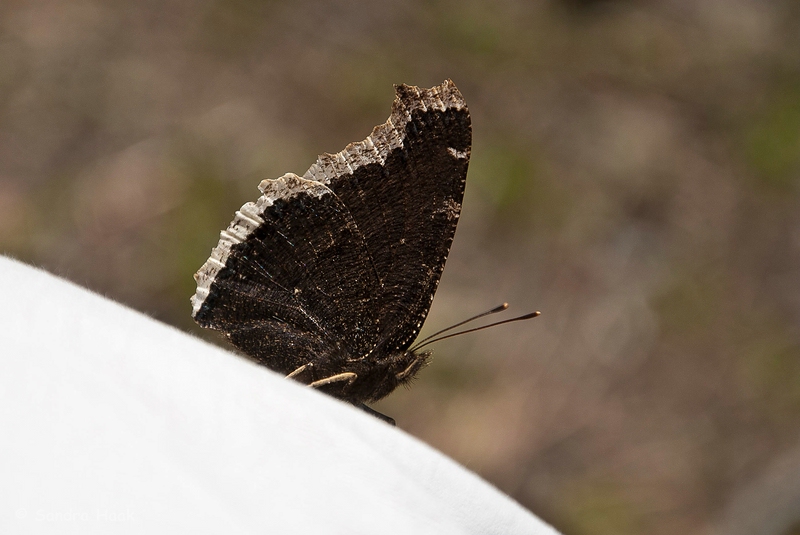 Große braune, die dauernd um mich rumschwirrten oder auf mir saßen. Fotografieren war echt schwierig, denn lange blieben die nicht sitzen. Nur einmal ließ sich einer länger auf meinem Knie nieder.