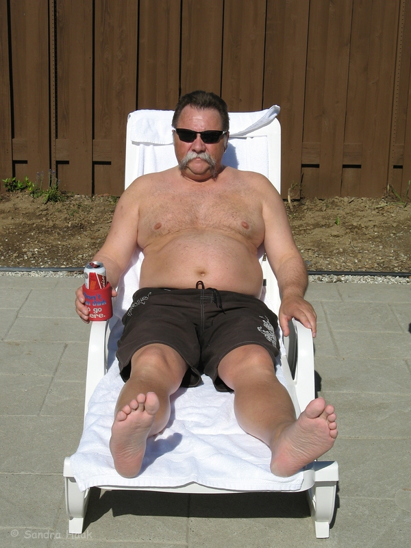 Wir sahen ein schönes Plätzchen, dort machte ich einen auf B & B (Buch und Bier) und Klaus suchte Gold.
