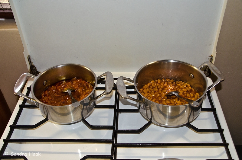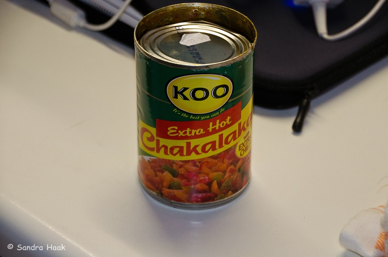 Dazu gab es Chakalaka Extra hot und spicy, wow, das war wirklich hot Außerdem Baked Beans mit Tomatosauce.