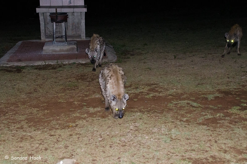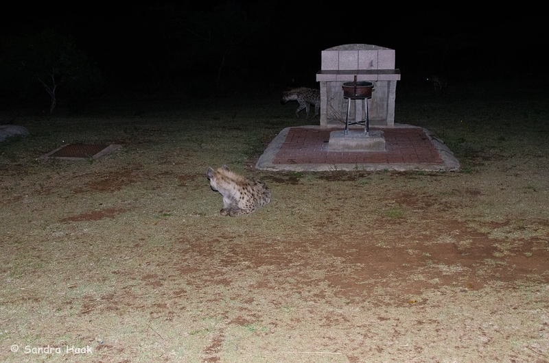 Plötzlich sahen wir eine Bewegung am Grill der Nachbarn. Da stand doch tatsächlich eine Hyäne und schaute, ob auf Nachbars Grill noch was liegt. Wir waren hin und weg