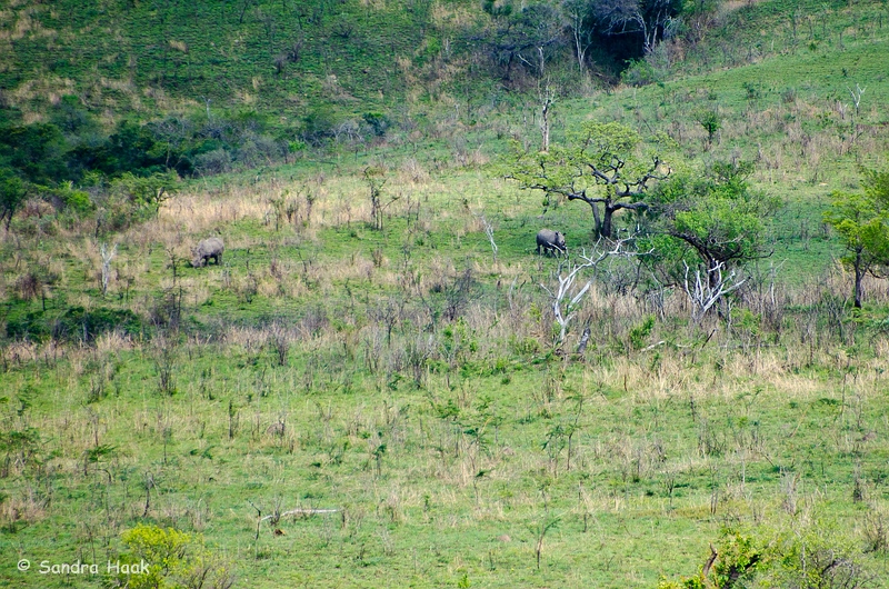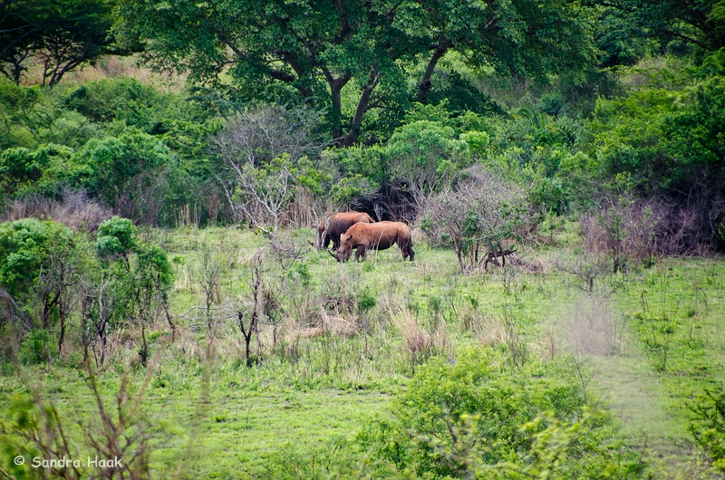 Wir fuhren vom iMfolozi in den Hluhluwe-Teil. Hier war es total grün. Bereits nach kurzer Zeit sahen wir Nashörner.