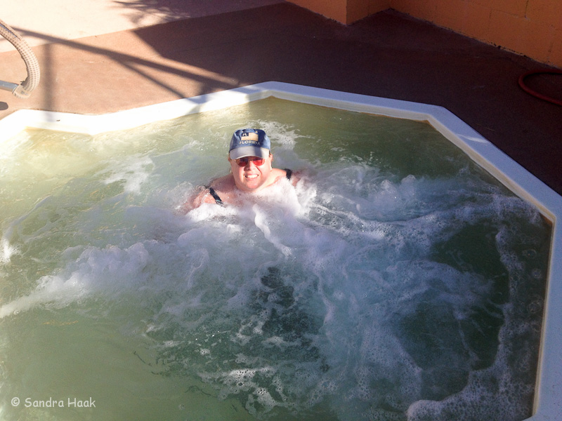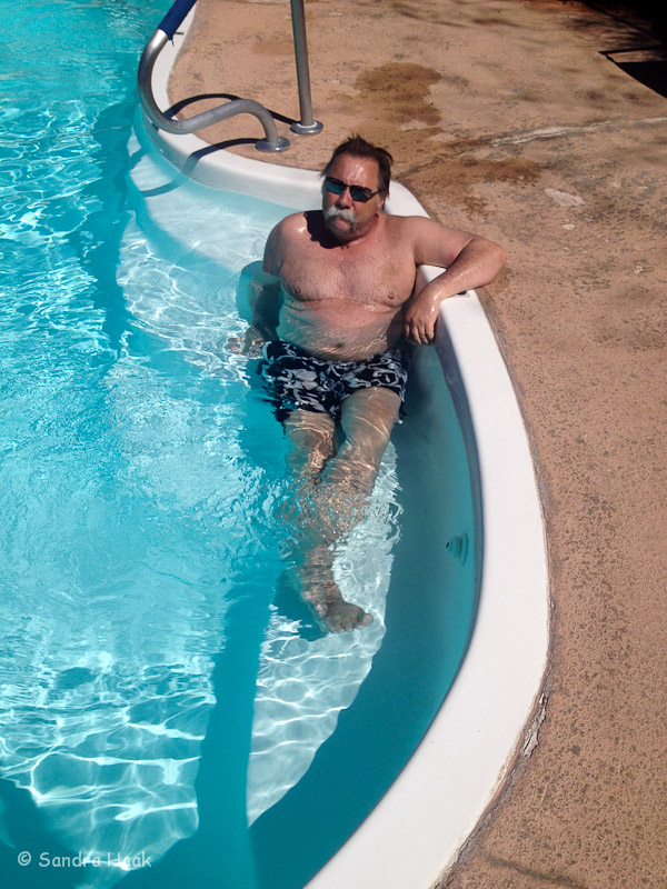 Um 15.30 Uhr kommen dann jede Menge ältere Herrschaften vom RV-Park zum Pool. Sie verteilten sich im Wasser und unterhielten sich lautstark von Beckenrand zu Beckenrand.