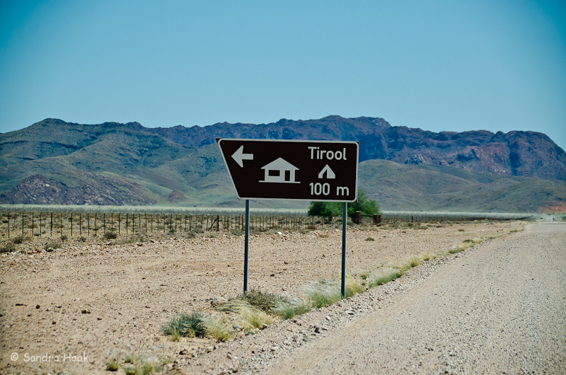 Um 13 Uhr erreichten wir eine Abzweigung, man konnte wählen, entweder Richtung Rezeption Guest oder Camping. Da wir nicht vorhatten zu campen, fuhren wir Richtung Rezeption Guest. Das erwies sich als falsch, denn wir landeten bei der Fest Inn Fels Lodge.
