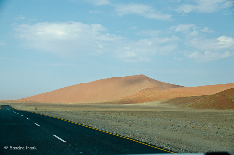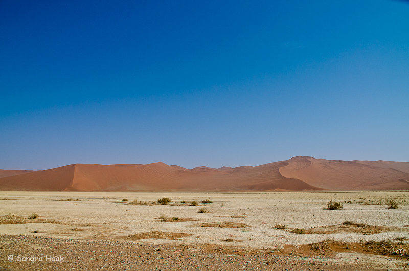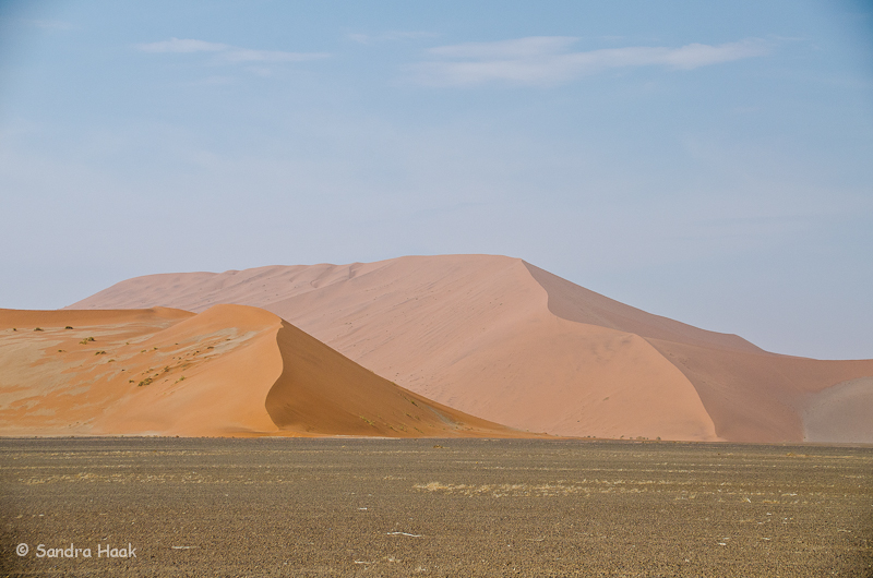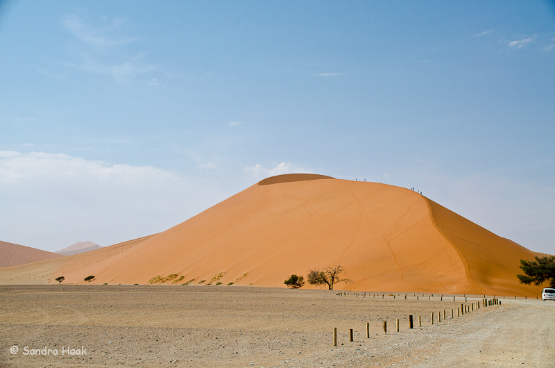 Leider hatten wir heute Pech mit dem Wetter, es schien zwar die Sonne, aber es war sehr dunstig. Die Dünen lagen wie im Nebel, dadurch kam die rote Farbe leider schlecht rüber.