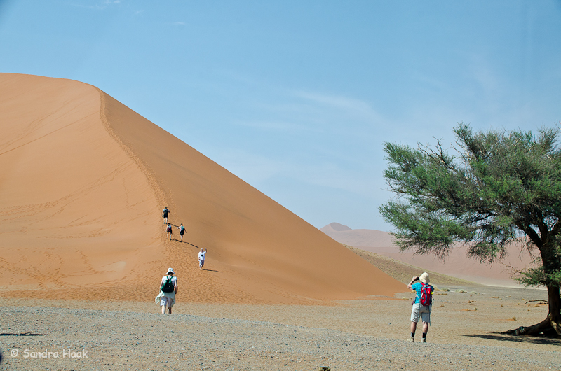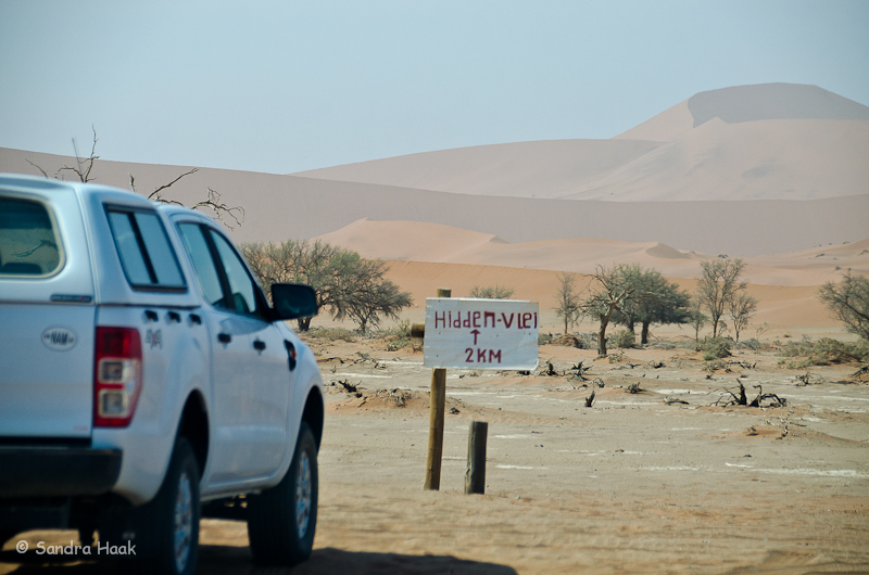 Um 9.35 Uhr kamen wir am Parkplatz an. Hier starteten die Shuttles für die 4WD-Strecke. Wir hatten einen 4x4, aber wir wollten gar nicht weiter fahren, da Klaus nicht bis zum Dead Vlei würde gehen können. So war für uns hier Endstation.
