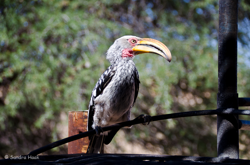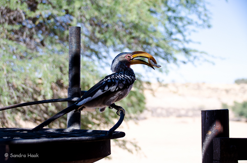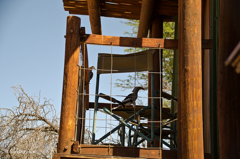 Dann knallte es plötzlich kräftig draußen gegen die Scheibe Ich sprang aus dem Bett, zog den Vorhang beiseite und sah in die Augen eines Tokos, nein, von zwei Tokos. Die beiden machten sich einen Spaß daraus, mit ihren Schnäbeln gegen die Scheibe zu hämmern.