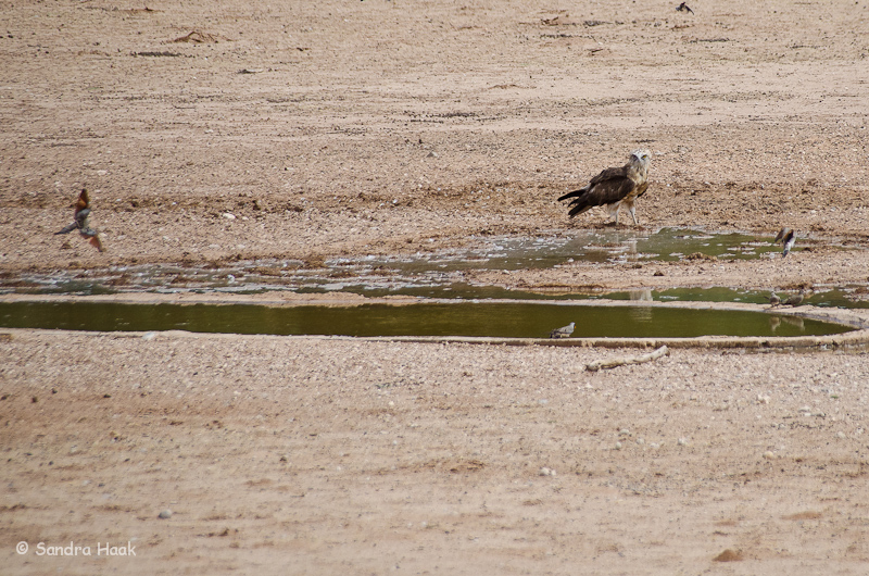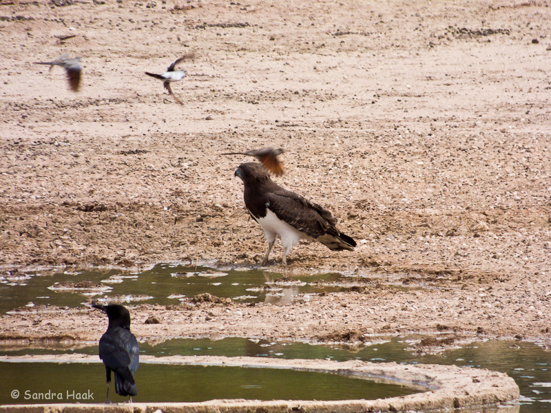 Am Wasserloch saß ein großer Raubvogel, vielleicht ein Martial Eagle?