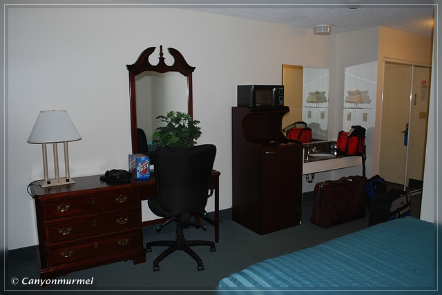 Green River - Best Western River Terrace Website: Bewertung: Stand: Oktober 2008 Update! Das River Terrace Motel gehört nicht länger zur Best Western Kette, sondern ist nun in privater Hand. Neue Website: River Terrace Kommentar: Das Best Western River Terrace in Green River ist ein absolutes Spitzen-Motel. Die Zimmer sind sehr groß, mit Sitzgruppe und Couch. Außerdem Kühlschrank, Microwelle und Kaffeemaschine. Das Bad ist sehr groß. Jedes Zimmer hat einen Balkon oder Terrasse. Wir hatten Riverview und konnten vom Balkon auf den Fluß sehen. Es gibt im Garten entlang des Rivers mehrere Möglichkeiten draußen zu sitzen. Es gibt einen Pool und Hot Tub auf dem Gelände. Wir hatten dort aber jedesmal Begegnungen mit verschiedenen Insekten, vor allem Spinnen. Das Frühstück war hervorragend. Man konnte bestellen, was man wollte, es wurde frisch zubereitet. Das Personal ist sehr aufmerksam. Bei unserer zweiten Buchung im gleichen Urlaub wurde auf Wunsch von mir ganz selbstverständlich wieder das gleiche Zimmer für uns reserviert. WLAN-Anschluß ist vorhanden Bilder: