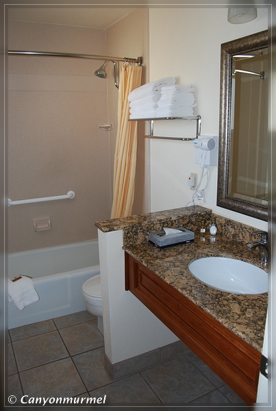 Kingman - Best Western A Wayfarer's Inn and Suites Website: Best Western A Wayfarer's Inn and Suites Bewertung: Stand: Mai 2009 Update: Mai 2011 Kommentar: Das Best Western A Wayfarer's Inn and Suites in Kingman ist ein zweistöckiges Motel mit Außenkorridoren. Die Zimmer sind groß, mit Sitzgruppe und Kühlschrank, Microwelle und Kaffeemaschine. Die Microwelle funktioniert allerdings nicht richtig, sie schaltet alle 2 Minuten ab. Dann muß man wieder 5 Minuten warten, bis sie wieder geht. Der Kühlschrank kühlt auch nicht richtig. Ein Warnschild weist darauf hin, daß man ihn nicht auf volle Stärke drehen darf, da er sonst abschaltet. Es gibt einen Pool und Hot Tub auf dem Gelände. Zum Frühstück gab es Toast, Bagels, Rühreier, Würstchen, Obst, Cereals und Pastry. WLAN ist vorhanden. Bilder:
