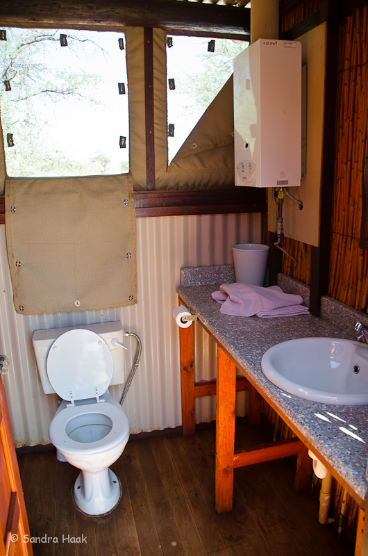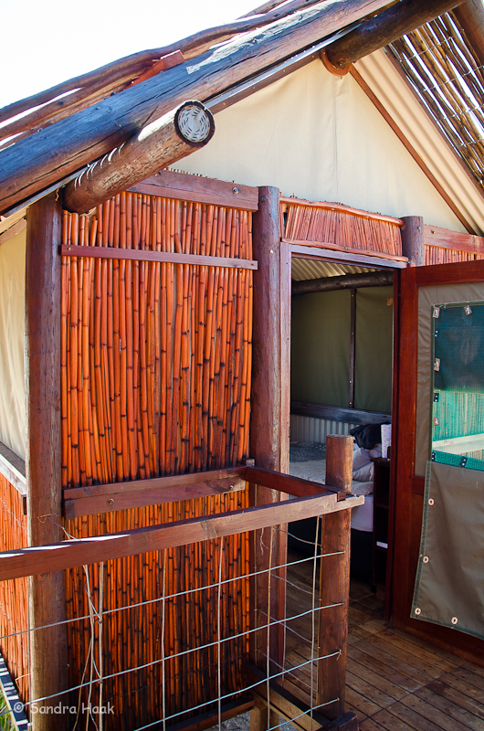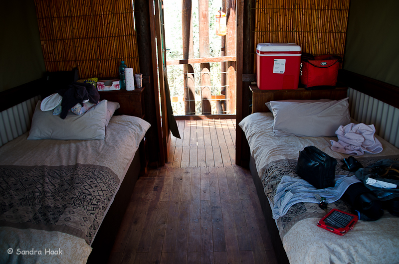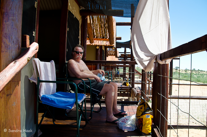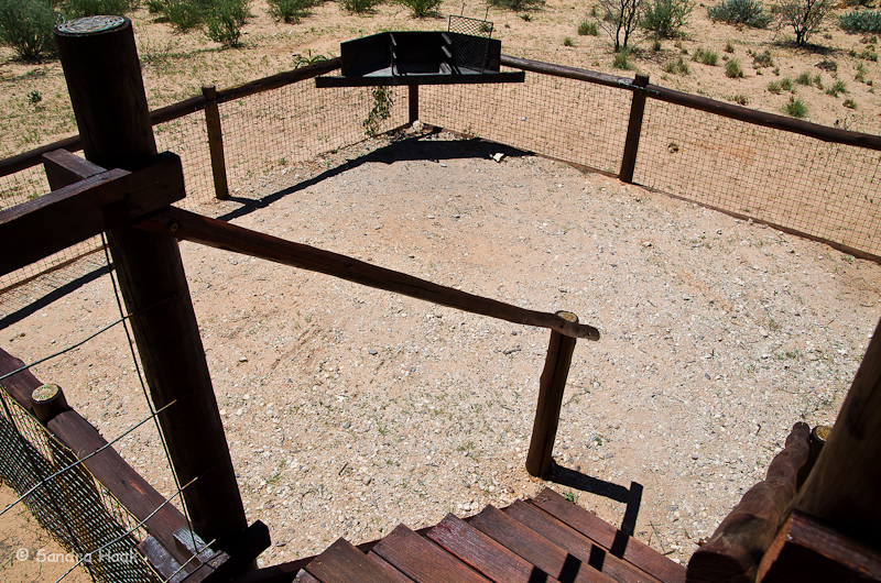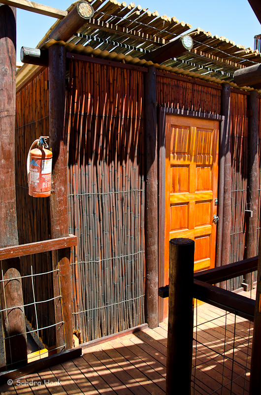 Kgalagadi Transfrontier Park - Bitterpan Wilderness Camp Website: Bitterpan Wilderness Camp Bewertung: Stand: Februar 2016 Kommentar: Das Bitterpan Wilderness Camp im Kgalagadi Transfrontier Park, ca. 54 km von Nossob, ist ein 4x4 Camp, d.h. es ist nur mit einem Fahrzeug erreichbar, das Vierrad-Antrieb hat. Es geht über 54 km Einbahnstraße durch Sand und über Sanddünen, vom Camp zurück zur Hauptstraße Richtung Mata Mata sind es weitere 53 km Einbahnstraße durch Sand. Einchecken muss man in Nossob, dort wird geprüft, ob man wirklich ein 4x4 Fahrzeug hat, dann wird das Tor zur Road nach Bitterpan extra für einen aufgesperrt. Kinder unter 12 Jahren sind nicht erlaubt! Hier ein Video von der Strecke Nossob-Bitterpan Und hier ein Video vom Rückweg zur Straße nach Mata Mata Das Camp besteht aus vier Schlafbereichen mit je zwei Betten. Die Schlafbereiche liegen nahe beieinander, das Bad ist gegenüber der Schlafbereiche, d.h. man muss über den öffentlichen Gang, um ins Bad zu kommen. Zum Glück hat jeder Schlafbereich sein eigenes zugewiesenes Bad. Es gibt keine individuellen Küchen, sondern nur eine Gemeinschaftsküche. Dort sind Herd und Kühl-Gefrier-Kombis, wiederum mit Gas betrieben und wieder nur mit schwacher Leistung, unbedingt Eis aus Nossob mitnehmen. In den Wohneinheiten gibt es keinerlei Tisch, weder draußen auf der Terrasse noch drinnen. Entweder man behilft sich selbst oder ist gezwungen sein Grillwürstl in die Gemeinschaftsküche zu tragen und dort zu essen. Wir hatten Unit 4, diese lag am rechten Ende der Wohneinheiten und gewährte eine gewisse Privatsphäre, da niemand daran vorbeilaufen musste, auf dem Weg zur Küche. Alle Bereiche haben solarbetriebene Beleuchtung, im Schlafzimmer gibt es hier keinen Decken-Ventilator. An der Eingangstür und neben der Tür zur Terrasse kann man die mit Moskitonetzen versehenen Fenster in den Zeltwänden aufrollen. Es gibt keine Steckdosen! Es wird empfohlen eigenes Trinkwasser mitzubringen. Die Terrassen liegen direkt nebeneinander und sind sehr schlecht angelegt, ab Mittag kommt die volle Sonne und man hat keinerlei Schatten. Bei 45°C Außentemperatur ist das denkbar blöd. Wir behalfen uns mit einem Leintuch, das wir aufspannten, viel brachte es allerdings nicht. Das Camp war frisch renoviert. Das Wasserloch ist sehr weit entfernt und schlecht einsehbar. Es gibt einen Campwart, der täglich die Betten macht, Handtücher wechselt etc. In unserem Fall war das ein finster blickender Typ, dessen Namen wir nicht verstanden haben. Er war zwar freundlich, aber äußerst zurückhaltend, auch machte er abends keinen Rundgang. Das Camp ist nicht eingezäunt. Restaurants oder Shops gibt es hier nicht, es ist ein reines Selbstverpflegercamp. Die nächsten Einkaufsmöglichkeiten sind in Nossob, bevor man nach Bitterpan fährt. Die Rate betrug 1290 Rand. Fazit: Der Weg zum und vom Camp ist ein echtes Abenteuer. Über 100 km durch Dünenlandschaft, rauf und runter, durch tiefen Sand, ein einmaliges Erlebnis. Das Camp selbst ist nicht das Gelbe vom Ei. Ich denke nicht, dass wir hierher nochmal kommen werden. Wir haben das Abenteuer des Tiefsand fahrens genossen, aber nochmal braucht man das nicht. Durch die permanente Hoppelei und die Konzentration auf die Strecke sieht man weder was links noch rechts ist. Man könnte an einem Löwenrudel vorbeifahren und würde es nicht wahrnehmen. Es war schön, aber einmal reicht! Bilder: Schlafbereich