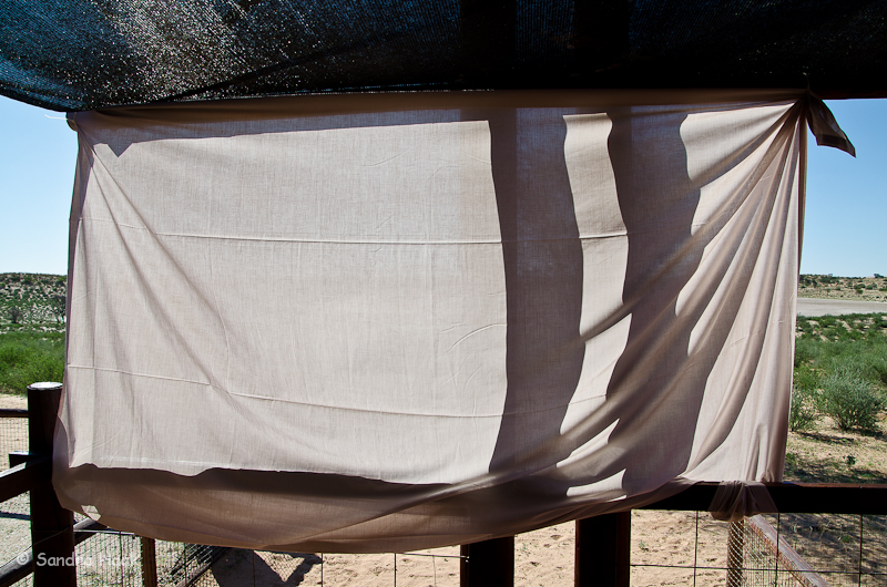 Leintuch als Sonnenschutz gespannt