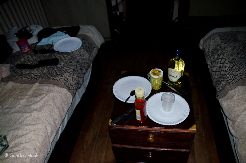 Notbehelfs-Tisch für das Abendessen