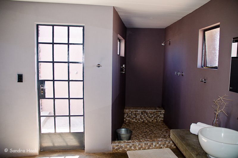 Die Fish River Lodge liegt am zweitgrößten Canyon der Welt, dem Fish River Canyon. Dorthin führt von den D Straßen, die auch schon Gravelroads sind, eine 20 km lange Zufahrtsstraße, die in furchtbarem Zustand ist. Außerdem ist Tempo 20 km/h vorgeschrieben. Man braucht also fast eine Stunde, nur für die Zufahrt!