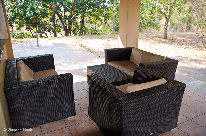 Auf der Veranda steht sowohl eine Esstisch-Gruppe, als auch eine bequeme Polstersessel-Gruppe zur Verfügung.