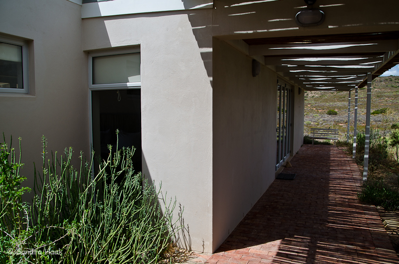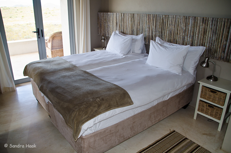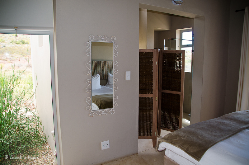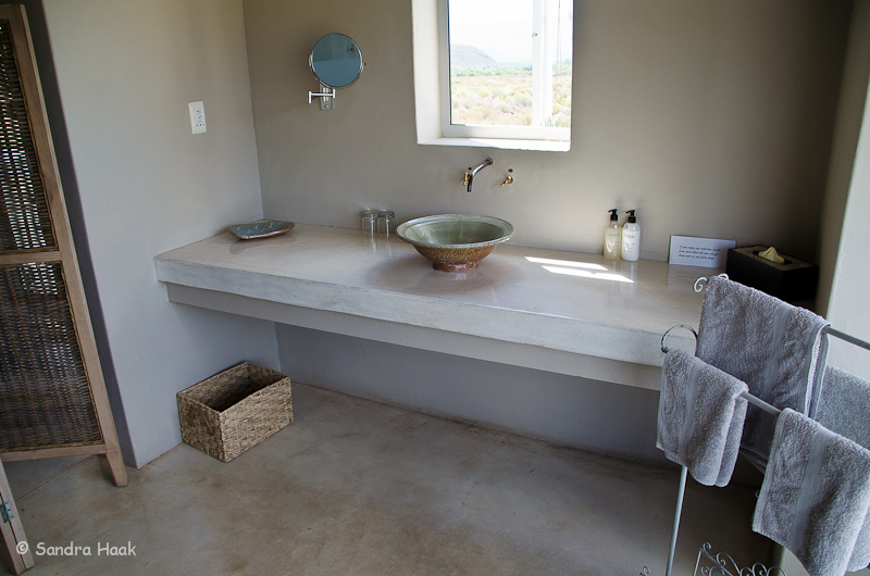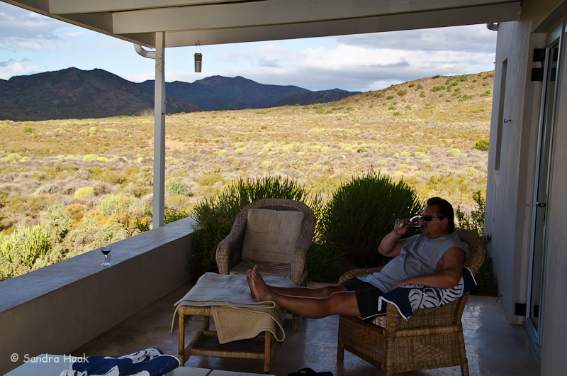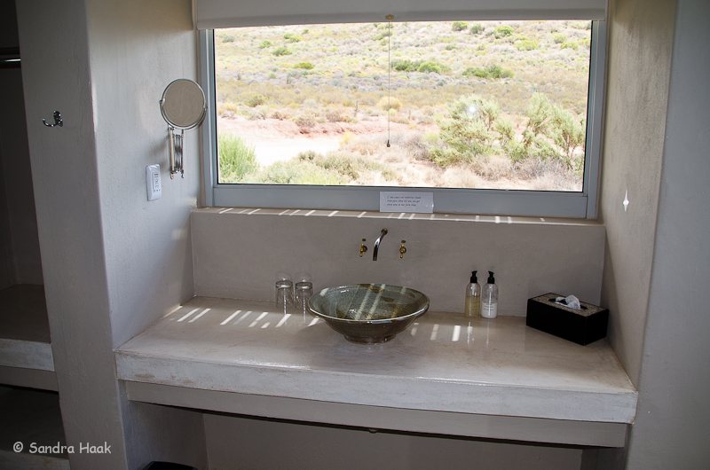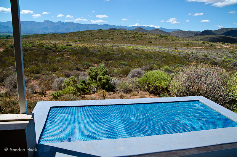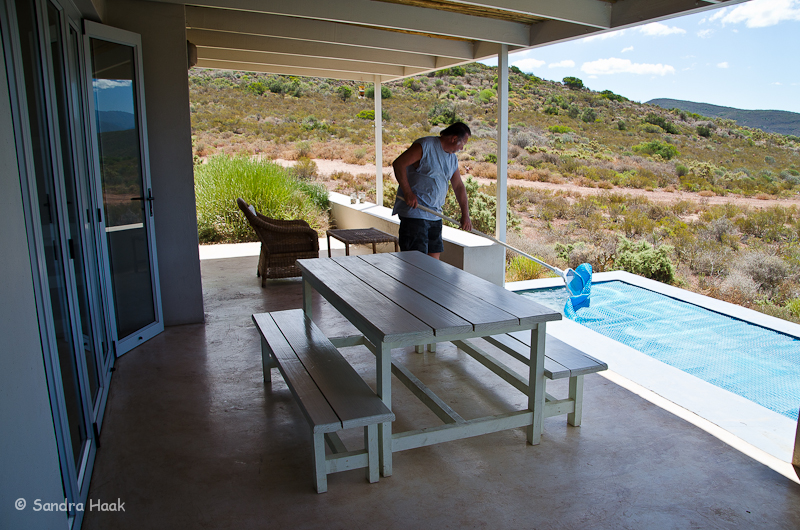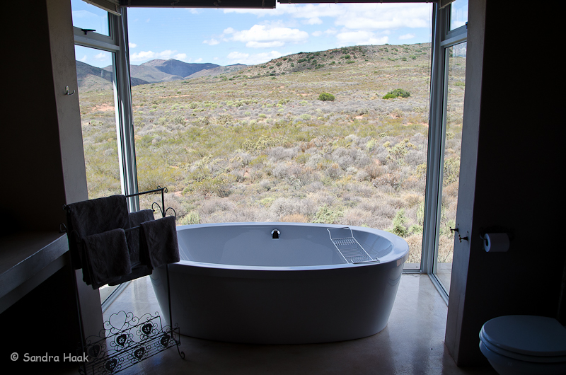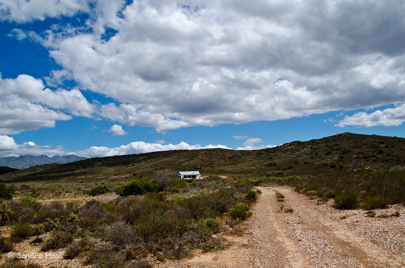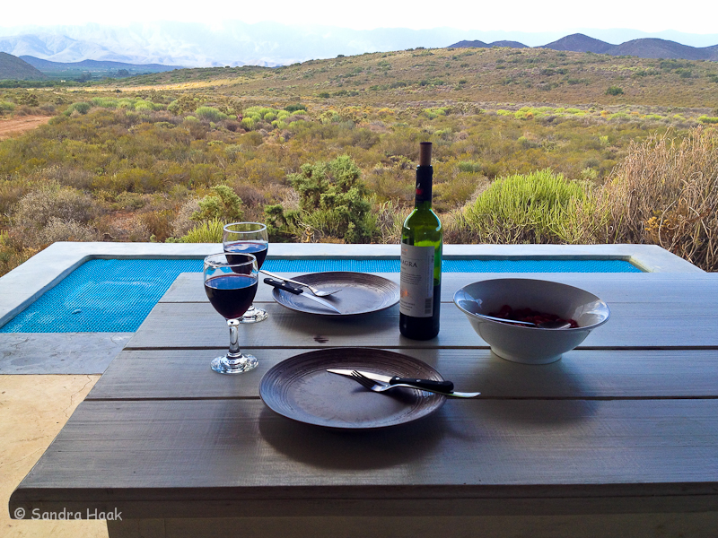 McGregor - Faraway Cottage Website: Faraway Cottage Bewertung: Stand: Februar 2016 Kommentar: Das Faraway Cottage gehört zur Tanagra Wine and Guest Farm in McGregor, im McGregor Valley. Das Cottage liegt völlig abseits, faraway eben. Es ist von keiner Straße und keinem Weg sichtbar. Und auch vom Cottage aus sieht man nur in der weiten Ferne die Ortschaft. Die Zufahrt erfolgt über eine Sandstraße, die mit einem abgeschlossenen Tor versperrt ist, das man mit einem Schlüssel öffnen muss. Das Auto parkt man im gemauerten Carport, bevor man über die rückwärtige Terrasse zum Cottage geht. Man sperrt die Glastür auf, betritt den Wohnbereich mit Küchenzeile und wird als erstes von einer Grußkarte und einer Flasche Wein auf dem Esstisch empfangen, das hat uns sehr gefreut! Der Wohnbereich mit Küchenzeile besteht aus einer gemütlichen Sitzgelegenheit, Kamin und eben der Küchenzeile mit Gasherd. Außerdem gibt es eine sehr gute Kühl-Gefrier-Kombi. Es gibt zwei Schlafzimmer, links und rechts des Wohnbereichs gelegen, angeschlossen ist jeweils ein offenes Bad, welches nur durch einen Paravant vom Schlafbereich getrennt ist. Schlafzimmer 1, rechts gelegen, hat ein Doppelbett. Angeschlossen ist das Bad mit WC, Dusche und einer Badewanne vor einem großen Fenster, welches einen traumhafen Ausblick bietet. Diesen Ausblick hat man auch jedes mal, wenn man die Toilette nutzt. Schlafzimmer 2 hat zwei Single Beds, im angeschlossenen Bad gibt es WC und Dusche. Jedes Badezimmer hat einen eigenen Zugang zur Terrasse. Die Terrasse bietet einen gemauerten Grill, bequeme Korbmöbel, einen großen Esstisch mit Bänken und das wichtigste, einen Splashpool. Der Pool war abgedeckt als wir angekommen sind, dadurch war er relativ sauber. Es gibt im Pool zwei Stufen, leider konnte man den Grund nach der zweiten Stufe nicht sehen, da das Wasser eine grünliche Farbe hat. Da es hier wilde Bienen gab, die das Wasser sehr angezogen hat und auch die Möglichkeit bestand, dass ein Skorpion ertrunken auf dem Grund liegt, haben wir nur den oberen Teil auf den Stufen genutzt. Der Ausblick aus jedem einzelnen der zahlreichen Fenster ist traumhaft schön. Das allerschönste ist aber die Ruhe hier. Es gibt keine lauten anderen Gäste, keine plärrenden Kinder, keinen Straßenlärm, außer Natur hört man nichts. Das Cottage ist komplett eco-friendly, der Strom wird ausschließlich aus Solar- und Wind-Energie gewonnen. Die Türen zur Terrasse und zur rückwärtigen Seite sind aus Glas und lassen sich komplett öffnen, indem man sie zur Seite schiebt. Auch auf der rückwärtigen Terrasse gibt es einen gemauerten Grill. Es gibt hier logischerweise kein WIFI. Die Rate betrug 1500 Rand pro Nacht. Die Besitzer sind Deutsche, Anette und Robert. Beide sind sehr nett! Anette kennen wir nur durch den Email-Verkehr, war sehr zuvorkommend und freundlich, besonders da sie uns auch noch einen vergessenen Gegenstand nach Hause nachgeschickt hat, nochmal lieben Dank dafür! Robert hat uns sehr nett empfangen, ein Gläschen Wein zum Empfang angeboten und uns alles ausführlich erklärt. Die tollen Tipps für Ausflüge in die Umgebung waren allerdings umsonst, denn wir wollten dieses Paradies nicht verlassen! Bilder: Zufahrt zum Haus